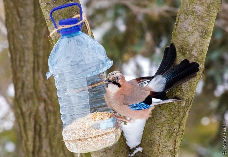 Найкраще для підгодовування птахів використати годівницю, закріпити її на гілці дерева, але так, щоб ви могли вільно підступитися до годівниці.
