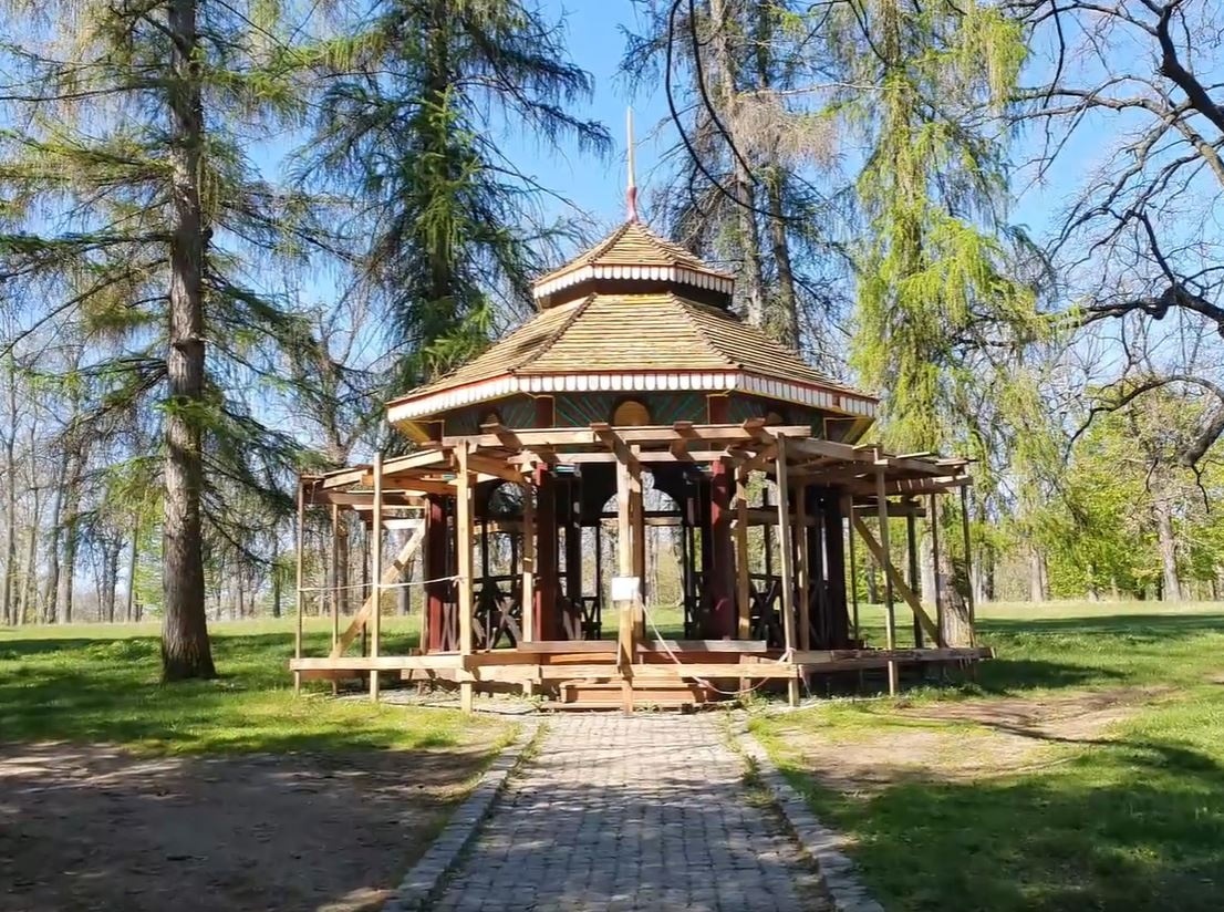 Володимир Грабовий пояснив, що іще до початку війни в парку почали роботи з реставрації містка в Темпейській долині і Китайської альтанки. На альтанці в першу чергу треба поміняти дах – гнилі крокви треба замінити і так поступово донизу – замінити всі елементи.
